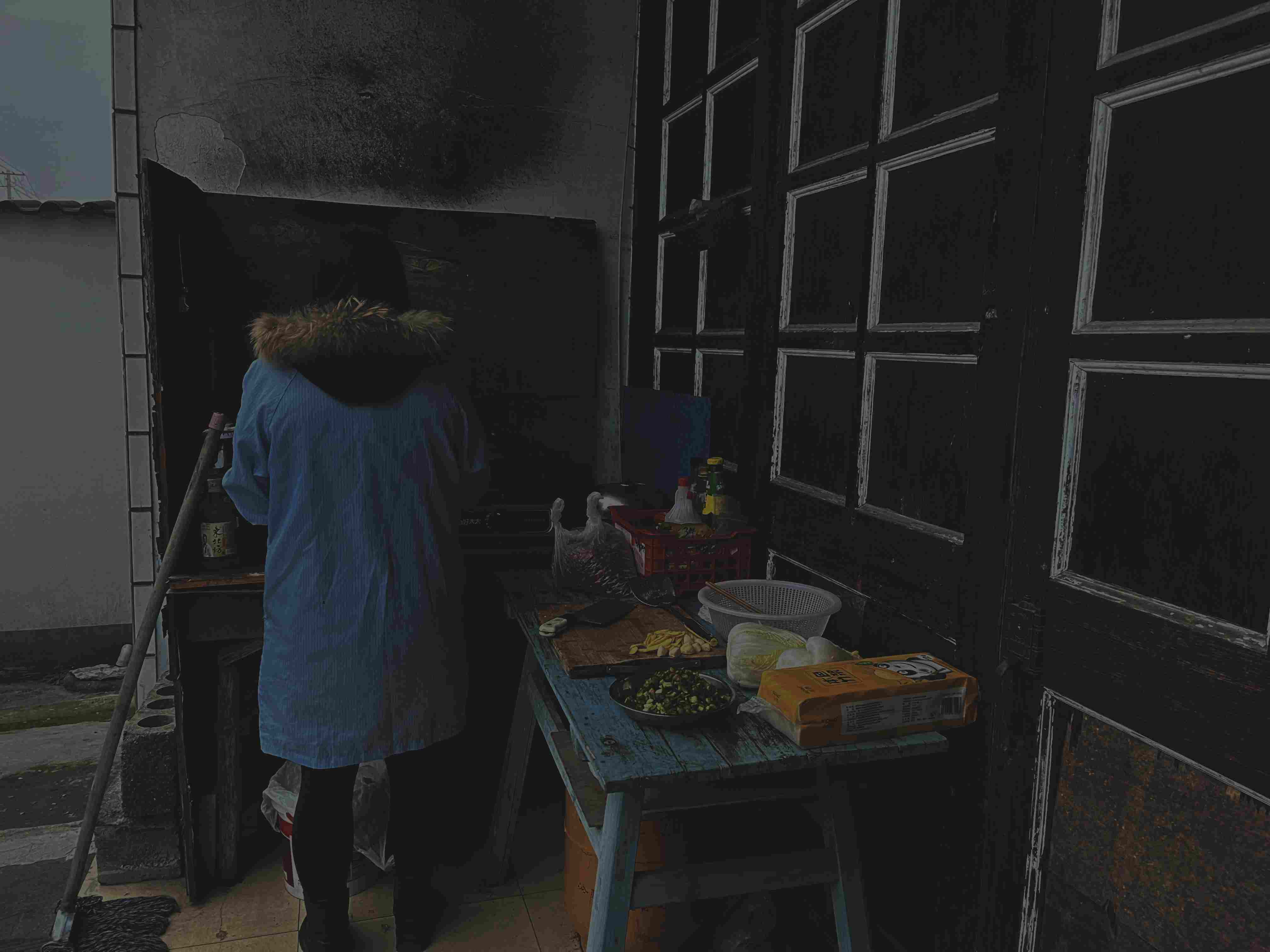 隔着一扇木门,徐海恩能听到菜刀落在砧板上的清脆声响,锅铲翻炒的间隙,隐约传来稀疏的爆竹声。徐基敏在屋外洗漱,哼着自己编的小调,“岁月是条悠悠长长的河……”
